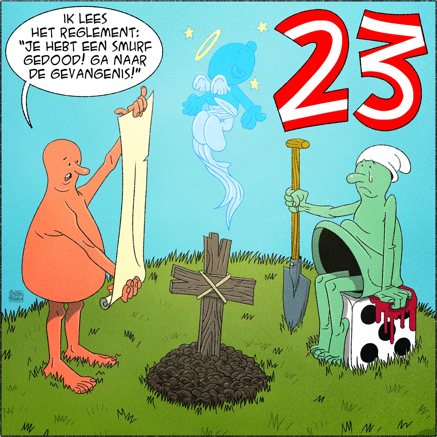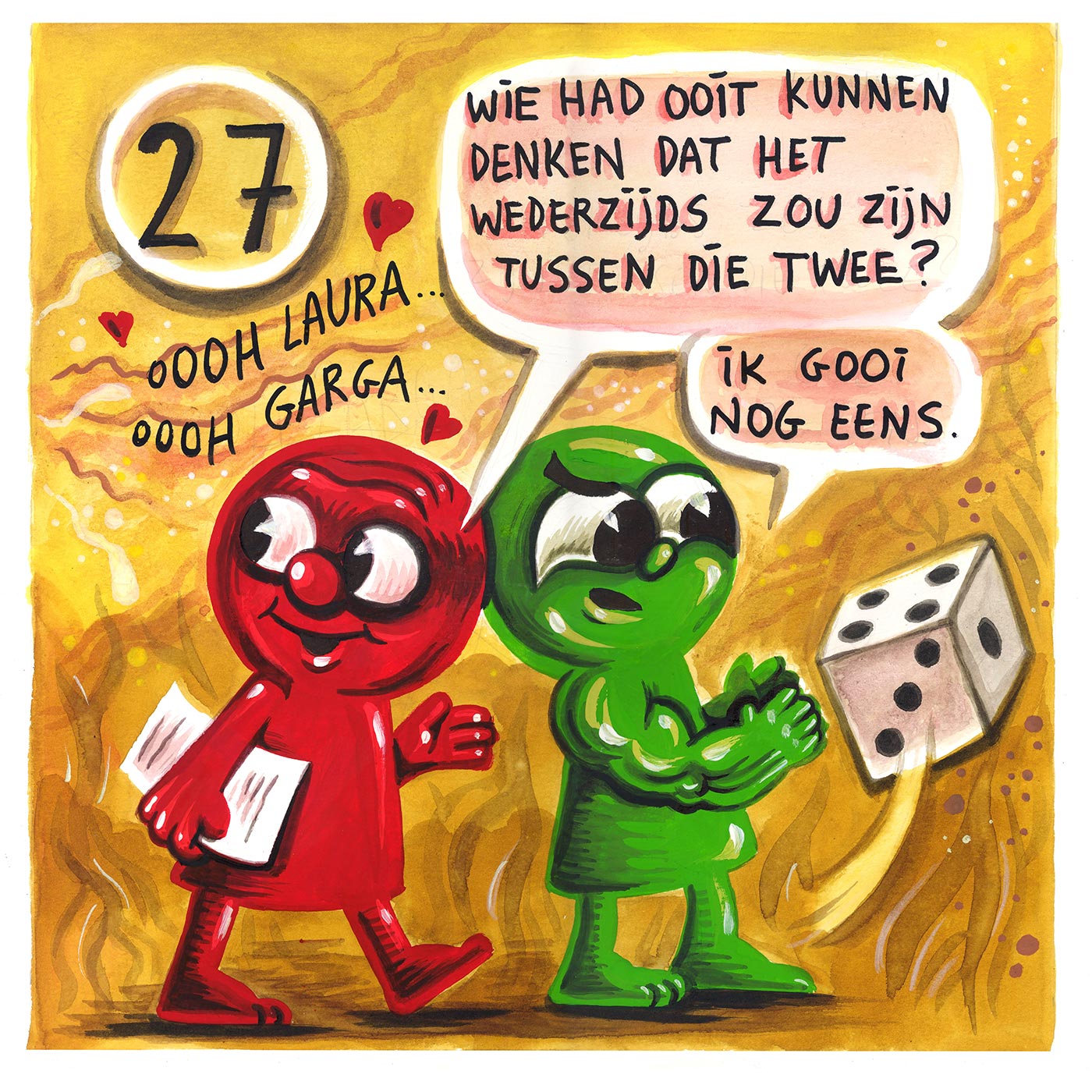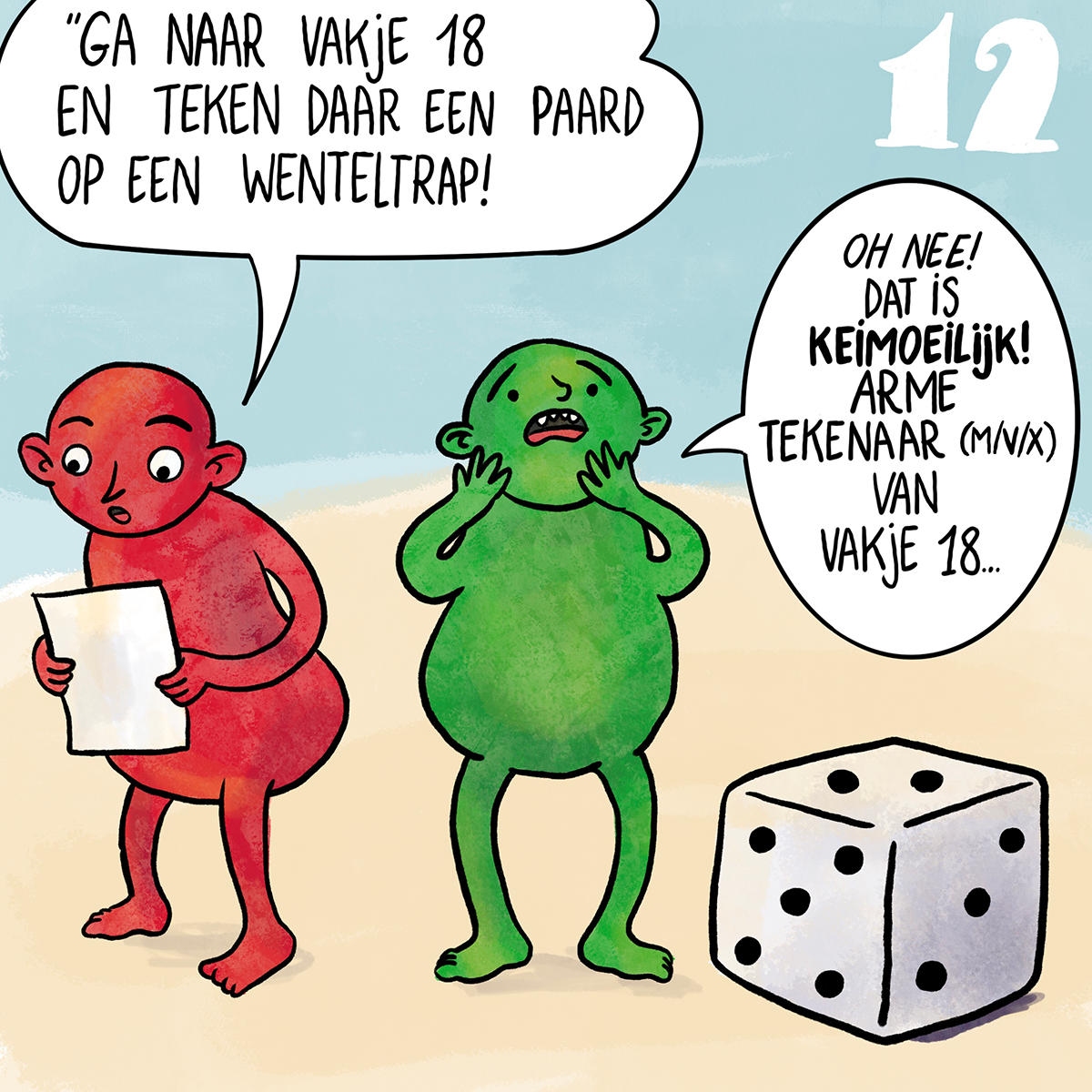In aanloop naar ons festival kruisten 20 striptekenaars - uit drie generaties - de pen in een ganzenbordestafette op onze sociale media. Ze mochten elkaars stijl doorkruisen en verhaallijnen ondermijnen. Een verrassende, soms zelfs surrealistische strijd van creatievelingen met als resultaat een uniek spel dat je onderaan deze pagina vindt.